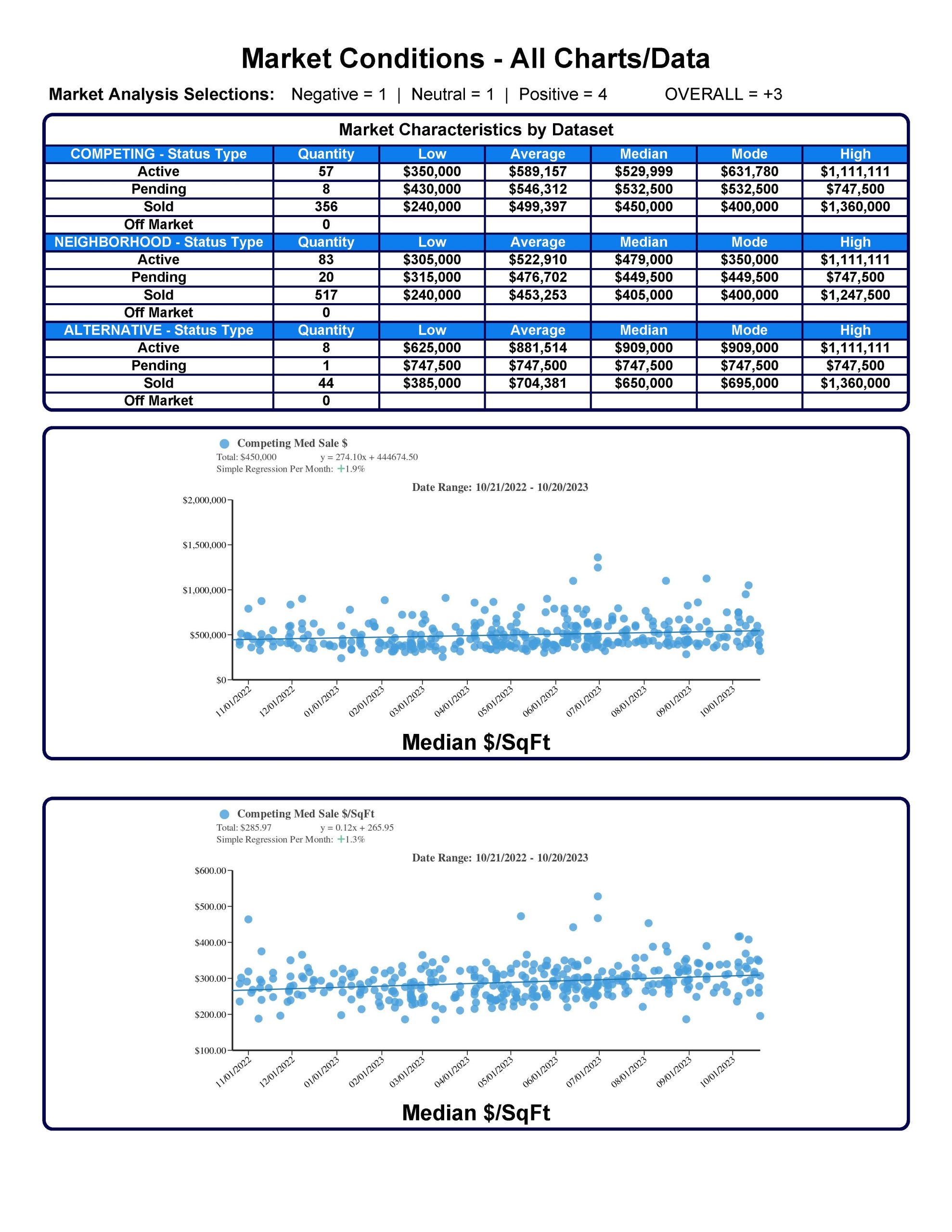 median sale price of $450,000 with a low of $240,000 and a high of $1,360,000. This analysis shows a change of